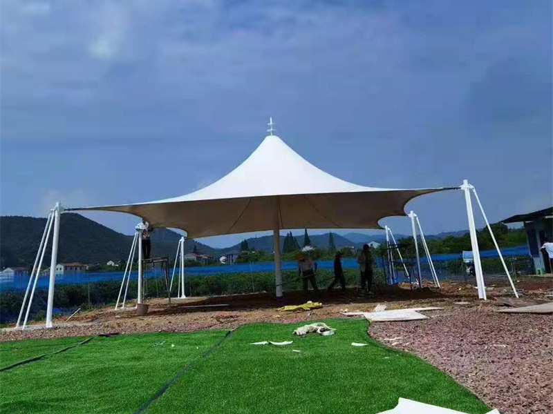 景观膜结构工程能提供丰富多彩的用途,并与园林景观溶为一体。创造出让人们尽情享受的快乐空间。充分展示了结构构件清晰受力的艺术之美,它巧妙的整合周围的环境,给人们一种高贵典雅、浪漫温馨之感。另外由于膜材料本身特有的显色性,在夜间彩灯的映射下能形成绚丽缤纷的景观。不仅为人们提供遮阳避雨的空间。同时,更由于这种生动活泼的造型能给人们带来时尚、轻松的休闲感受,所以广受欢迎。
