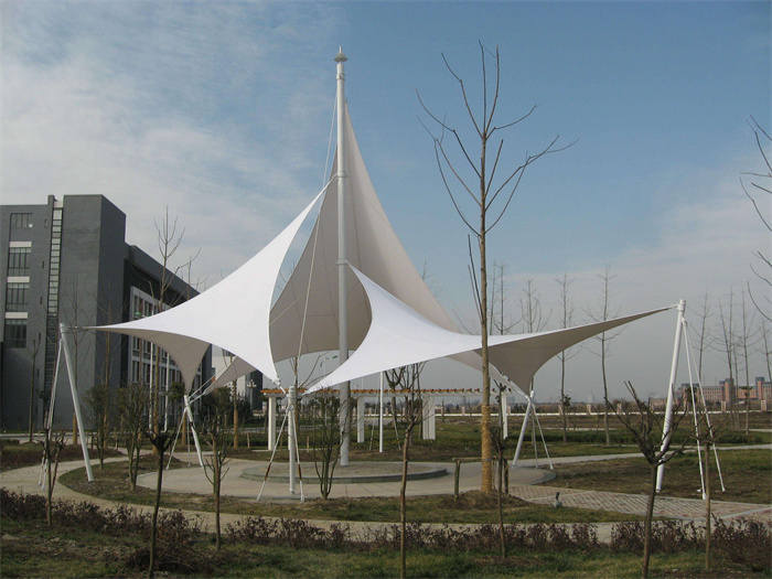 景观膜结构工程能提供丰富多彩的用途,并与园林景观溶为一体。创造出让人们尽情享受的快乐空间。充分展示了结构构件清晰受力的艺术之美,它巧妙的整合周围的环境,给人们一种高贵典雅、浪漫温馨之感。另外由于膜材料本身特有的显色性,在夜间彩灯的映射下能形成绚丽缤纷的景观。不仅为人们提供遮阳避雨的空间。同时,更由于这种生动活泼的造型能给人们带来时尚、轻松的休闲感受,所以广受欢迎。
