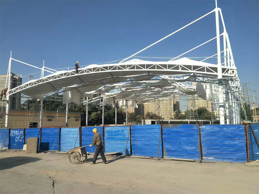 景观膜结构工程能提供丰富多彩的用途,并与园林景观溶为一体。创造出让人们尽情享受的快乐空间。充分展示了结构构件清晰受力的艺术之美,它巧妙的整合周围的环境,给人们一种高贵典雅、浪漫温馨之感。另外由于膜材料本身特有的显色性,在夜间彩灯的映射下能形成绚丽缤纷的景观。不仅为人们提供遮阳避雨的空间。同时,更由于这种生动活泼的造型能给人们带来时尚、轻松的休闲感受,所以广受欢迎。