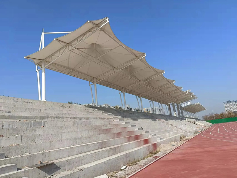 因此很多学校 或者体育场 都会选择张拉膜结构的形式来搭建体育看台,这样不仅可以保证体育看台的美观,还可以达到遮阳 遮雨的效果,后期使用过程中还方便维护,节省人工成本。