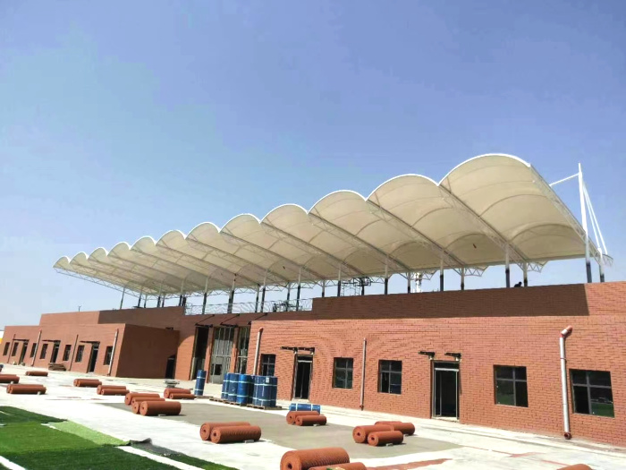 二、根据每个建筑风格看台膜结构样式可以有较大的定制空间,可以根据客户的需求而做出不同风格样式的张拉膜顶棚,满足质量的同时又能做到美观的效果。