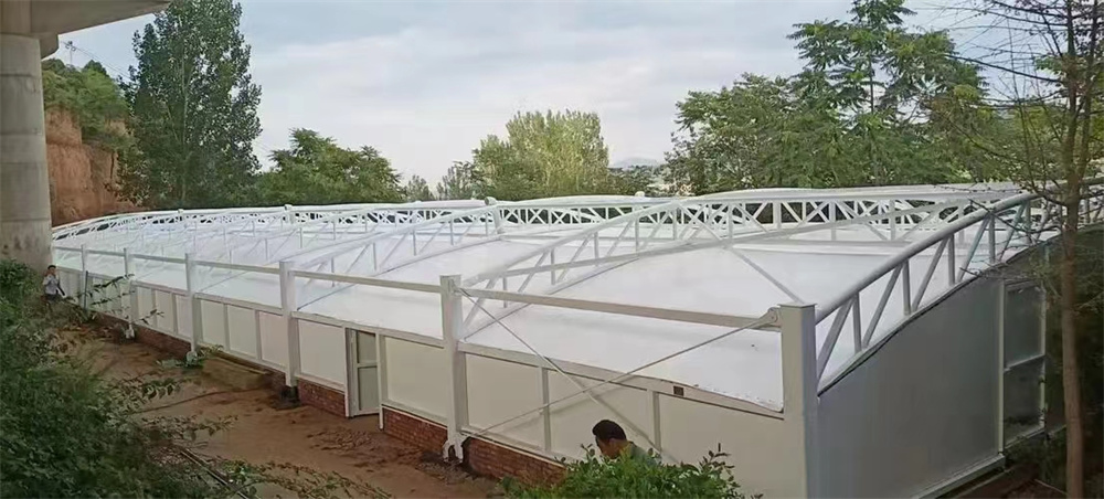3.施工方面,膜结构的施工均采用专业的施工团队,对当地的环境,池体的结构特征,膜结构污水池加盖的展现形式等进行严密的考虑后,再进行膜结构污水池加盖施工,保证每次施工的安全性和质量。