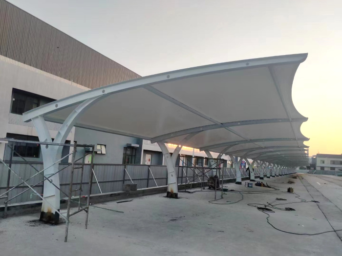 膜结构停车棚,自重轻,具有良好的受力特点——成为大跨度空间结构的主要形式之一。停车场的规划和建设成为现代城市规划的重要组成部分,在以后的建设里会变得越来越重要。膜结构轻巧、别致的造型在停车场及候车厅的建设中担当了重要角色,除了满足防风雨、防日晒等基本功能外,并有较好的标识招揽效果,展现了人们个性化的一面。