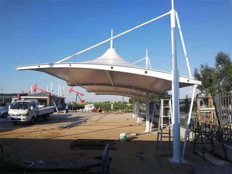 膜结构停车棚,自重轻,具有良好的受力特点——成为大跨度空间结构的主要形式之一。停车场的规划和建设成为现代城市规划的重要组成部分,在以后的建设里会变得越来越重要。膜结构轻巧、别致的造型在停车场及候车厅的建设中担当了重要角色,除了满足防风雨、防日晒等基本功能外,并有较好的标识招揽效果,展现了人们个性化的一面。