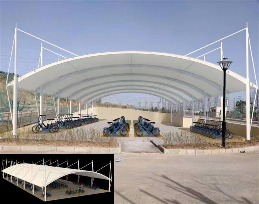 膜结构停车棚,自重轻,具有良好的受力特点——成为大跨度空间结构的主要形式之一。停车场的规划和建设成为现代城市规划的重要组成部分,在以后的建设里会变得越来越重要。膜结构轻巧、别致的造型在停车场及候车厅的建设中担当了重要角色,除了满足防风雨、防日晒等基本功能外,并有较好的标识招揽效果,展现了人们个性化的一面。