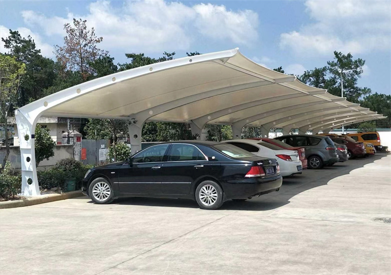 膜结构停车棚,自重轻,具有良好的受力特点——成为大跨度空间结构的主要形式之一。停车场的规划和建设成为现代城市规划的重要组成部分,在以后的建设里会变得越来越重要。膜结构轻巧、别致的造型在停车场及候车厅的建设中担当了重要角色,除了满足防风雨、防日晒等基本功能外,并有较好的标识招揽效果,展现了人们个性化的一面。